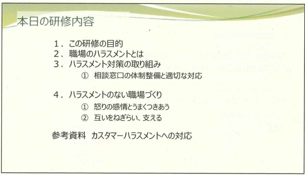 ハラスメントの予防は、私たち一人ひとりの「想像力」と「配慮」から始まります。今回の学びを活かし、皆が気持ちよく働ける職場環境づくりに貢献していきます。