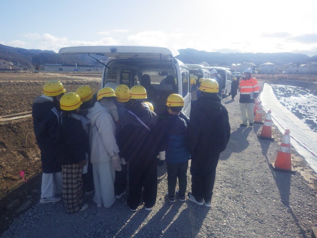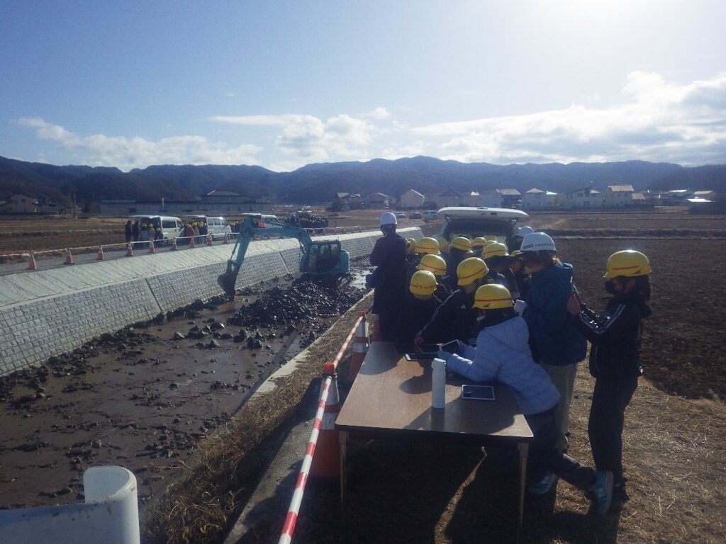 先日、令和8年1月28日に佐久市立佐久城山小学校4年生の皆さんをお招きし、建設現場の見学会を開催しました。今回の見学会の舞台は、佐久市を流れる田子川の護岸工事現場です。