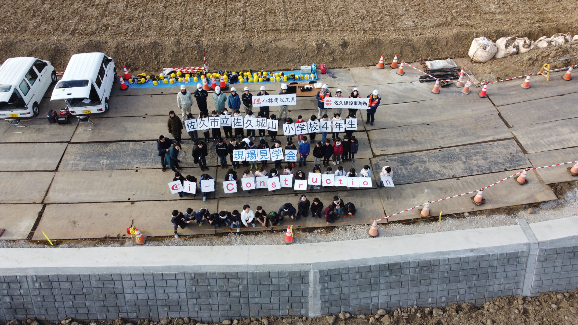 社会見学 2025 1/30 イベント 教育 2025年1月30日 佐久市立城山小学校の4年生約60人のみなさんが、河川改修工事の現場見学会に参加しました!普段は見ることのできない工事の裏側を知ることができて、子どもたちは大満足の様子でした。最後には、みんなで記念写真を撮りました。 イベント 教育